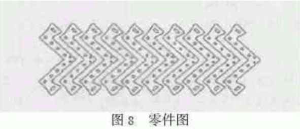 其實(shí)、小型零件的合理排樣,應(yīng)根據(jù)零件特點(diǎn)具體分析。有時將零件在AUTOCAD中旋轉(zhuǎn)一定角度,再應(yīng)用AMADA - 2D生成程序,更為合理。如圖8所示。