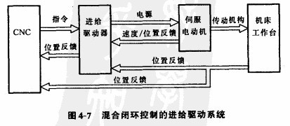 圖4-7所示為混合閉環(huán)控制?;旌祥]環(huán)方式來用半閉環(huán)與全閉環(huán)綜合的方式。