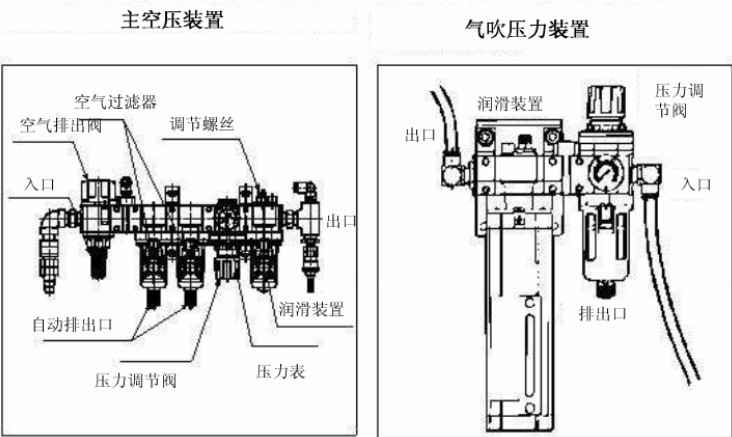 通過(guò)位于空氣過(guò)濾器底部的排出閥門(mén)來(lái)排出氣吹裝置的積水。而主空壓裝置的積水是自動(dòng)排出的