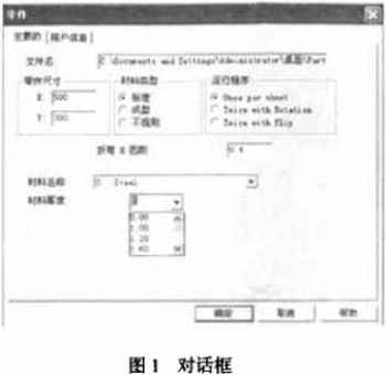 3.1繪制加工工件的圖形(1)雙擊桌面的Cnckad2006圖標(biāo)啟動(dòng)該軟件:(2)新建一個(gè)零件,出現(xiàn)圖1所示對(duì)話(huà)框,根據(jù)加工工件的要求,定義工件尺寸、板料類(lèi)型、材料類(lèi)型、厚度等參數(shù),在用戶(hù)信息中可以寫(xiě)入加工工件的圖號(hào)、項(xiàng)目、編程員等相關(guān)信息;