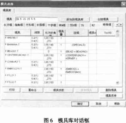 (4)在創(chuàng)建轉(zhuǎn)塔時(shí),對(duì)于加工中用到的常見(jiàn)特殊模具.Cnckad2006為我們提供了一個(gè)很方便的方法可以直接創(chuàng)建,即在模具菜單下點(diǎn)擊“創(chuàng)建模具庫(kù)”,出現(xiàn)圖6所示對(duì)話(huà)框。