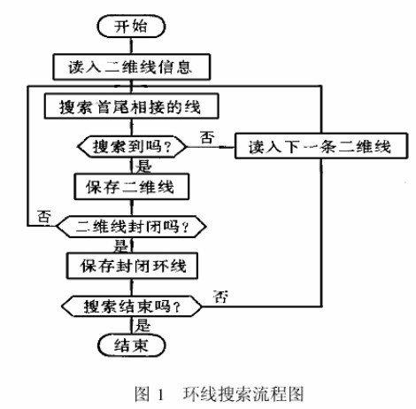 二維CAD圖形中的圖形繪制方法不一定能保證各圖索按次序首尾相接形成封閉的環(huán)線,因而在數(shù)控加工代碼生成時(shí)需要將圖形中的環(huán)線分離出來,作為加工對象的邊界因此CAD圖形處理的第一步要將離散的二維線整理成按先后次序首尾相接的環(huán)線,其搜索流程如圖l所示