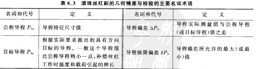 對于閉環(huán)系統(tǒng)的數(shù)控沖床,絲杠的制造誤差使得它在工作時負(fù)載分布不均勻,從而降低承載能力和接觸剛度,并使預(yù)緊力和驅(qū)動力矩不穩(wěn)定。因此,傳動精度始終是滾珠絲杠最重要的質(zhì)量指標(biāo)。滾珠絲杠副的幾何精度與檢驗(yàn)的主要名詞術(shù)語見表6.3(摘自GB/T 17587.1-1998),相對于公稱導(dǎo)程、目標(biāo)導(dǎo)程的偏差示意圖見圖6. 18。